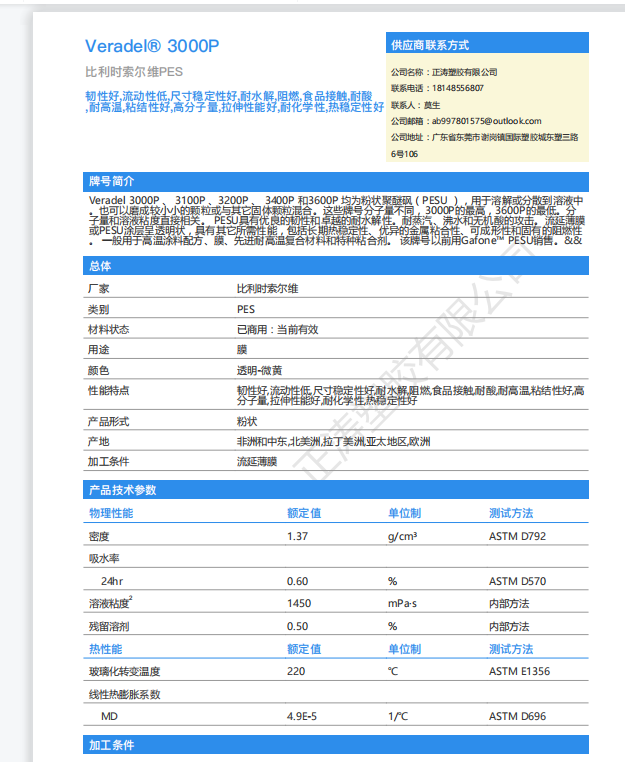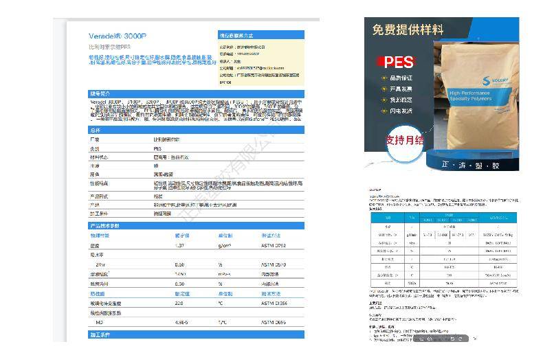 索尔维 3000P 耐老化高韧性 聚醚砜 型号3200 品名PES 标准料