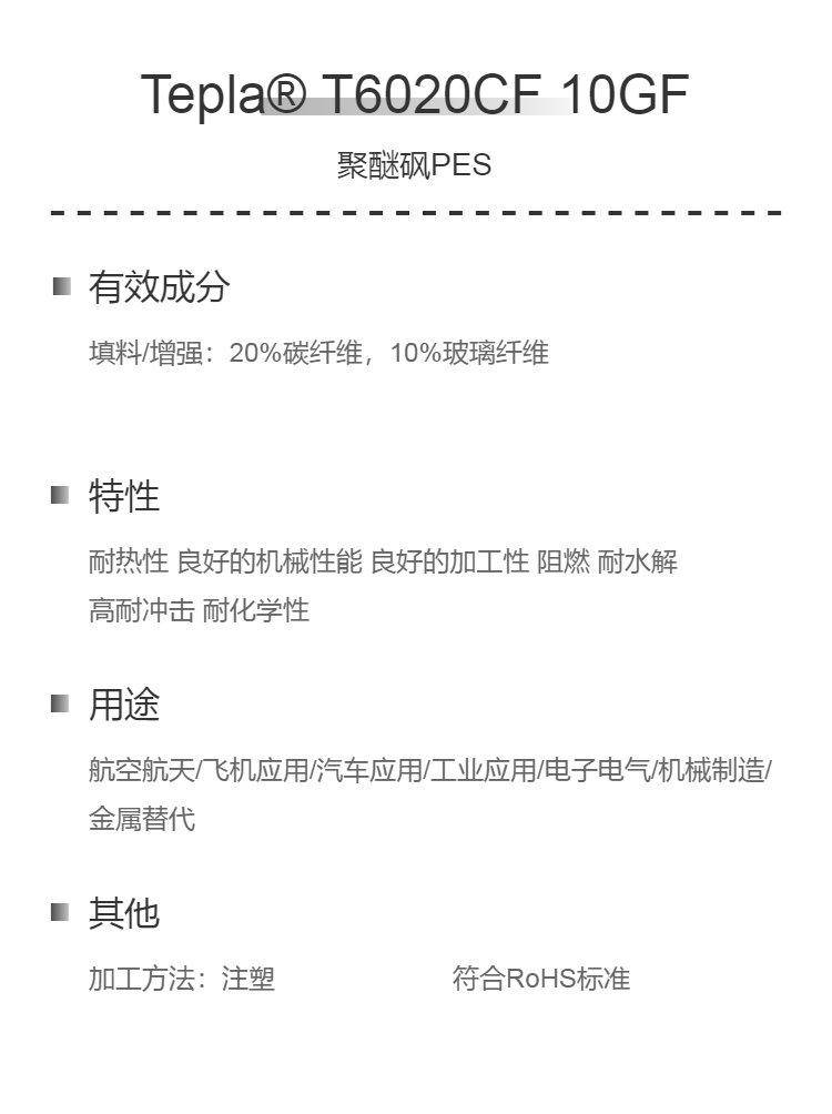 增强级PES+20CF碳纤+10GF玻纤 超高强度 高耐热 阻燃 耐水解 聚醚砜