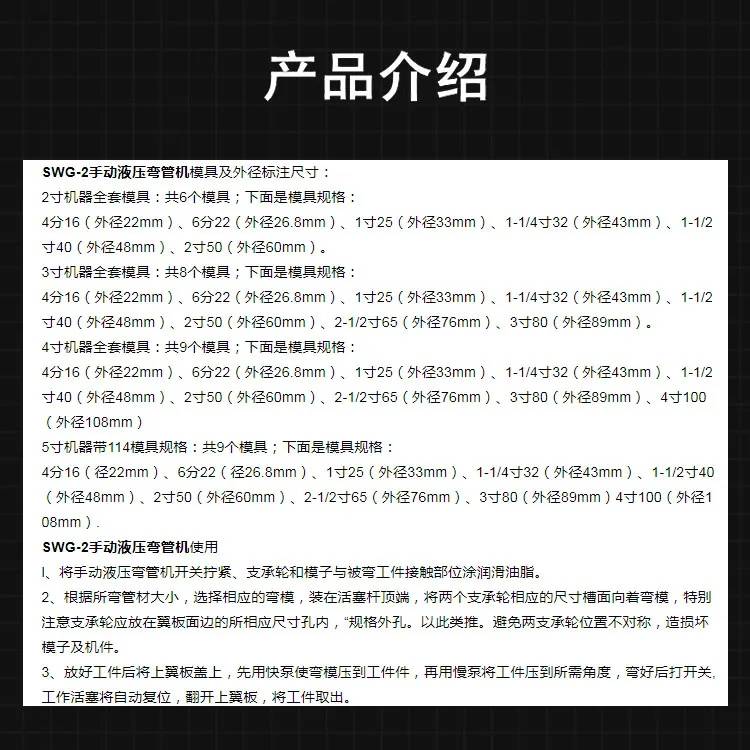 SWG-5手动液压弯管机 5寸22-114mm整体式液压弯管器