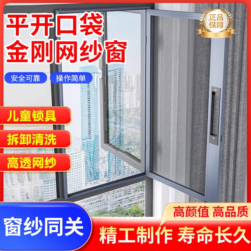 平开口袋金钢网纱窗高透清楚防蚊虫猫爪