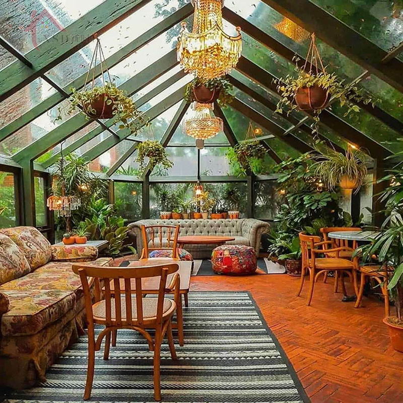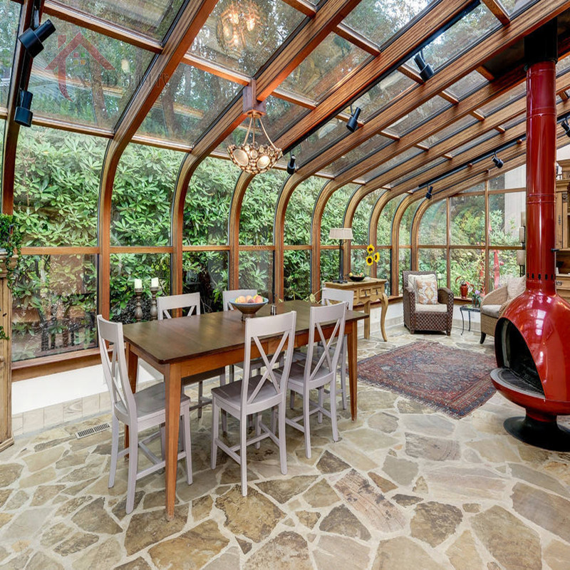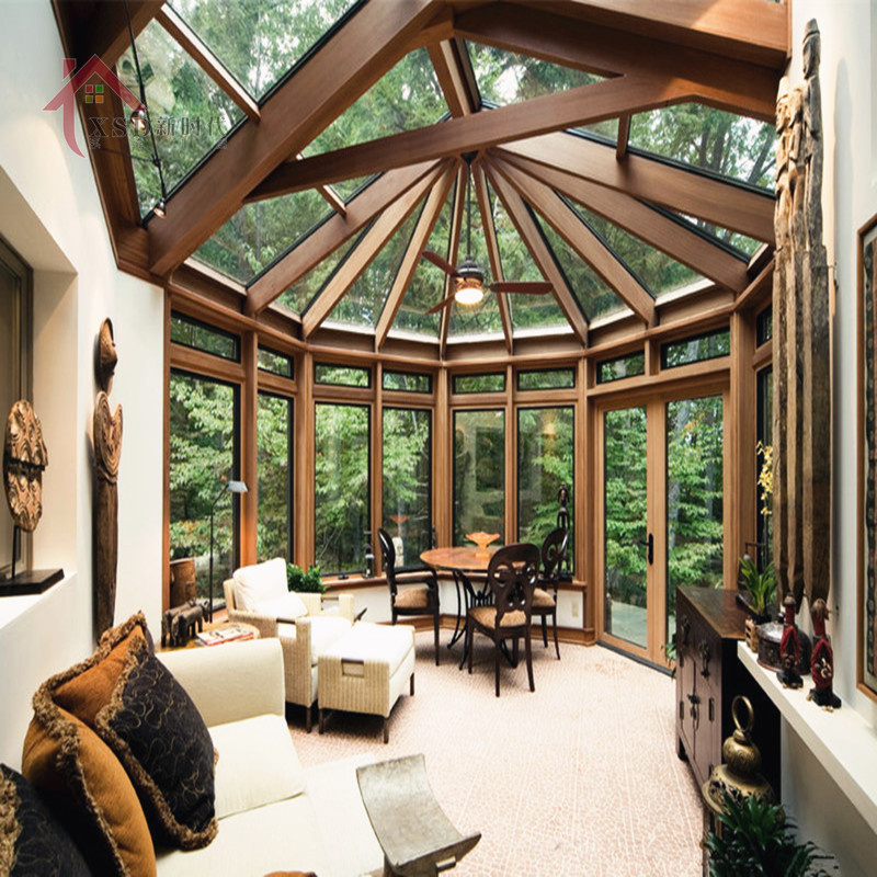 别墅露台阳光房钢结构铝合金中空钢化玻璃铝包木断桥铝阳台安装