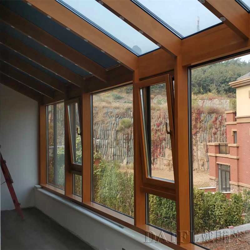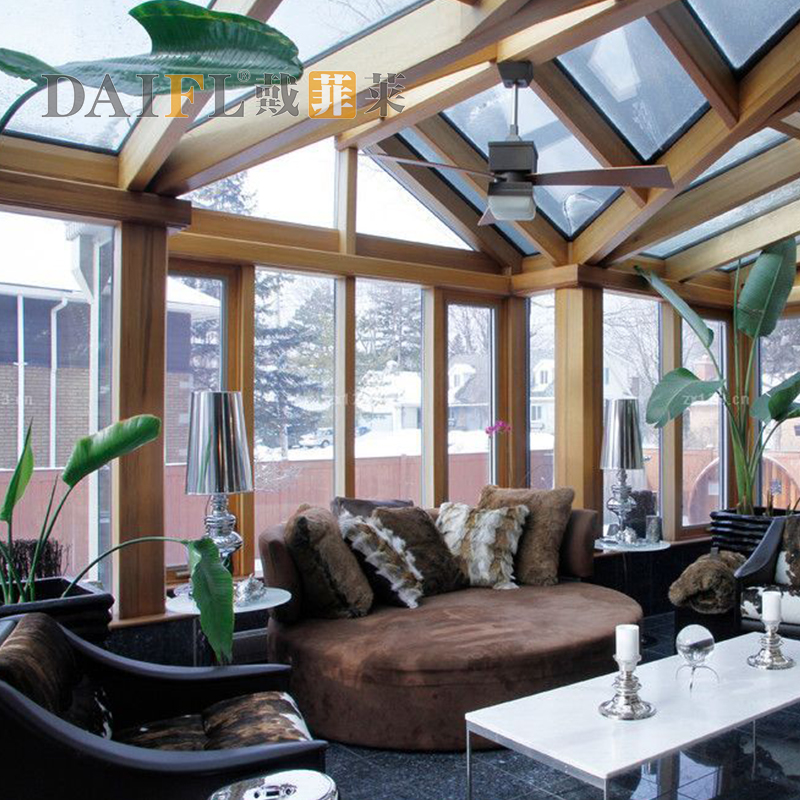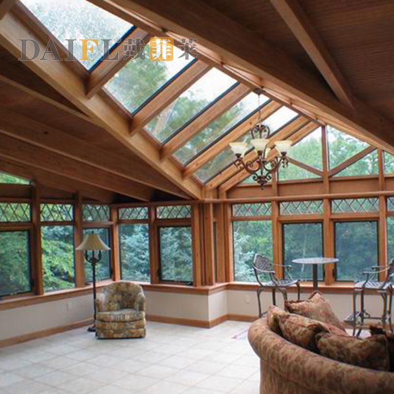 厂家直销花园露台平台复式铝包木阳光房实木门窗钢结构断桥铝合金